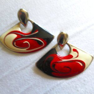VINTAGE 80s new wave black Red pour paint swirl earrings