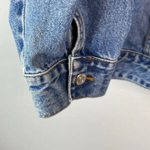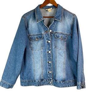 Women’s blue fade wash mid wash denim Vintage 90’s Cotton Ginny Plus Jean Jacket.