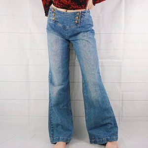 🍓ABOUT: Vintage 90s dose 70s lace up and button up crotch flare jeans. Light wash jeans with wide leg flare fit. Iconic 70s pocketless look!