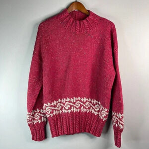 VINTAGE 90’s Handmade Knitted Mock-neck Wool Sweater Berry Cable-knit Baggy L