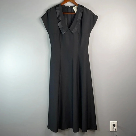 Ladies Black Vintage 90’s Black Wednesday Addams Vibe Northern Traditions Chelsea Collar Calf Length Midi Dress.