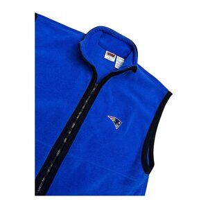 Gear up for game day with a touch of nostalgia in this VINTAGE 90s New England Patriots NFL fleece vest. A must-have for any dedicated fan, it features the iconic blue color and proudly displays the team's name, embodying the spirit of the regular season. Made to fit a men's large, this vest ensures both comfort and style as you represent your team.
