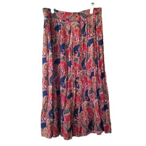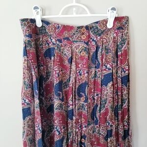 VINTAGE 90's Paisley Button Down Pleated Circle Skirt Size 14
