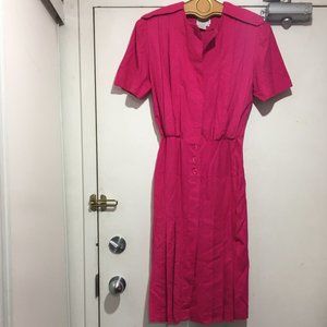 Ambria Midi Dress, Lightweight Size 8P, Color Pink, 100% Silk, Shoulder Strap Pads, Pleated, Elastic Waist, Closure Button Down, Good Condition, Beautiful Silk Dress, Great Look, Great Fitting.