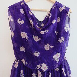 VINTAGE ANNA SUI 100% Silk Purple Ditsy Floral Draped Dress - Size US 2
