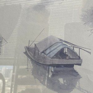 VINTAGE ASIAN WATERCOLOR PRINT STAMPED AND NUMBERED