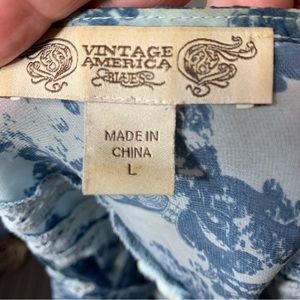 VINTAGE America Blues Boho Pullover Blouse Blue Paisley Floral Crochet Top Sz L