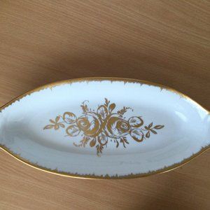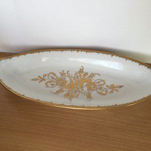 VINTAGE BIRKS HAND PAINTED w GOLD ROSE MADE IN FRANCE SERVING DISH LONG BB mark