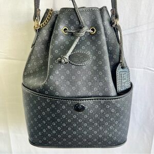 This vintage black bucket bag is a versatile accessory that exudes timeless style. Crafted from durable canvas, it offers both practicality and charm. With its spacious interior and adjustable shoulder strap, it's perfect for everyday use. Whether you're running errands or heading out for a casual outing, this bag adds a touch of vintage flair to any ensemble. The classic black color ensures it pairs seamlessly with a variety of outfits, making it a must-have addition to your accessory collection.