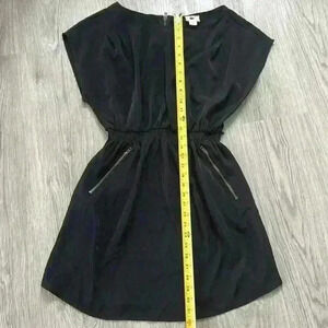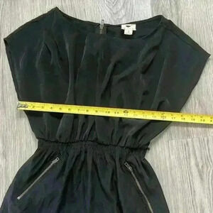 VINTAGE BLACK MINI DRESS BACK ZIPPER SIDE POCKETS ROUND NECK SIZE SMALL