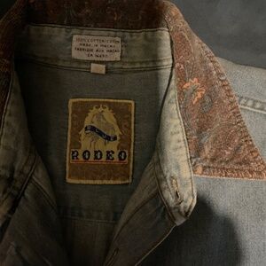 VINTAGE BLUE JEAN …SHIRT BY ‘’ BLUE RODEO ‘’’ SIZE X-LARGE .. 100 % COTTON WITH CORDEROY PATTERENED ACCENTS ON COLLAR AND CENTRE OF SHIRT.. DONT MISS THIS VINTAGE PEICE OF FASHION