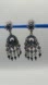 Chic chandelier earrings with ornate silver design. Features dark blue accents. Ideal for elegant occasions.
