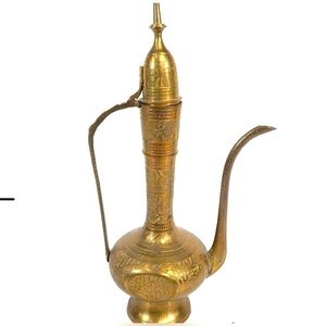 VINTAGE- BRASS Metal Tea pot with 5 glasses - Gold tone- Used