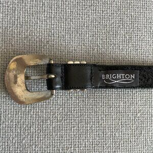 VINTAGE BRIGHTON 1995 Black Leather Women's Belt Silver-Toned Buckle 1 x 33 inch