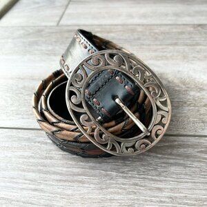 VINTAGE BRIGHTON BROWN BLACK TAN CAMEL BRAIDED LEATHER WESTERN BELT