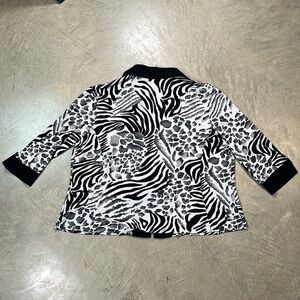 VINTAGE Bantry Bay By Tina Camato Black White Grey Animal Print Zip Up Blouse 3W