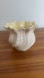 Belleek Ireland porcelain flower pot in the Neptune design. A pattern that looks like a curved shell with a pointed detail on top. The bottom of the pot is stamped withe the Belleek 5th mark, which is green, and was used from 1955-1965. It has a capital "R" in a circle above the right hand tip of the banner. Beautiful lustre and delicate piece. Cream colour exterior and pale yellow interior.