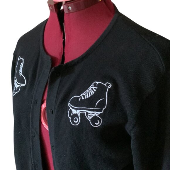 VINTAGE - Black Cardigan Sweater White Quads roller skates embroidery Large