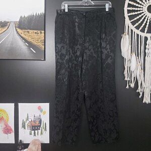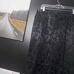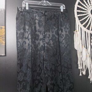 VINTAGE Black Satin Baroque Floral Print Embroidery Trousers