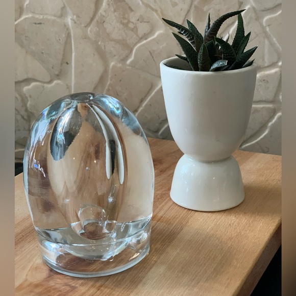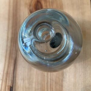 This heavy weight art glass, blown glass piece can be used as an oil lamp (wick and oil not included) or as a vase for that perfect posy. It can also double as a paper weight. Whatever you use it for, it will definitely be a conversation piece.
