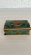 Vintage small tin with lid by Blue Bird Confectionery, Harry Vincent Ltd. Mottled green with gold tone. Depicts a galleon ships on the top with gold scrolls around the edges. The bottom says "Blue Bird, Confectionery, Harry Vincent Ltd, Hunnington, Worcestershire England". This likely dates to the 1950's or early 1960's based on the reference to Hunnington, Worcestershire.