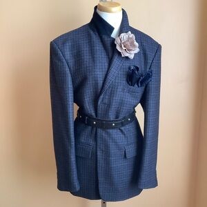 VINTAGE Blue Wool Houndstooth Plaid Blazer Size 42