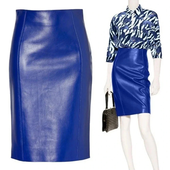 VINTAGE - Bright Blue 1980s Leather Skirt