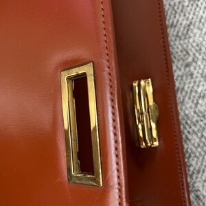 Good vintage condition, a things to note, please review photos. There are a few places where there is light scuffing and indents on the bag. One side of the bag when opened shows some wear, see photo. The gold tone clasp and closure has some discolouration. The interior is clean, however one side of the lining is loose, this could be glued. Overall a great stylish bag with a few imperfections.