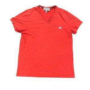 VINTAGE Burberry V Neck T Shirt Medium Orange