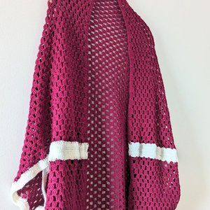 VINTAGE Burgundy Knit Shawl Short Sleeve Shawl Cardigan Boho Hippie Festival