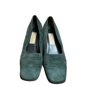 Vintage Byblos heels. Suede green. Block heel. Square toe. Size 9. Great used condition. See photos for wear.