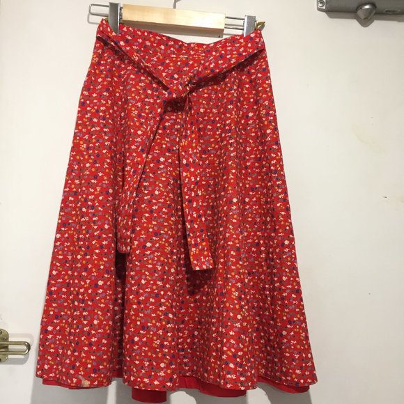 Vintage C&A Floral Midi Skirt, Lightweight Size 26, Multicolor Floral Print, 100% Cotton, Lining, Closure Back Zipper, Button, Front Tie Straps, Small White Spot but it is in Condition, Summer Swing Midi Skirt, Great Look, Great Fitting.