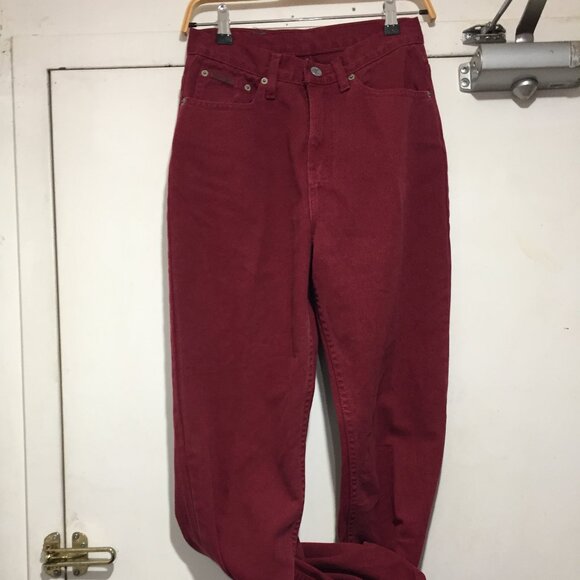 Calvin Klein Jeans, Size 6, Color Red, 100% Cotton, Side Pockets, Back Pockets, Closure Zipper, Button, Good Condition, Relaxed Fit, Great Look, Great Fit.