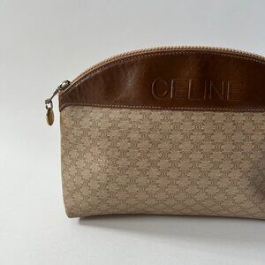 CELINE Macadam PVC Leather Pouch Clutch Bag Beige Brown Purse Vintage.