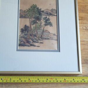 VINTAGE CHINESE LANDSCAPE SCENE PAINTING RED SEAL MARK FRAMED GOLD FRAME GUC