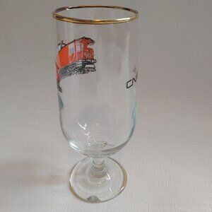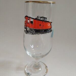 VINTAGE CN RAIL CABOOSE Stemware glass Gold Rimmed With Flaw