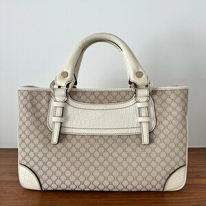 This classic vintage bag from Celine is in excellent condition.This Boogie Tote Bag in Beige/Brown and Cream is in very good pre- owned condition. The exterior canvas is clean and beautiful, it has very little sign of wear on it. The handle and interior is clean and beautiful.