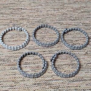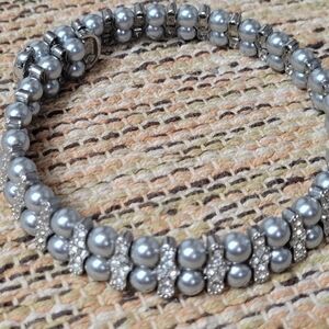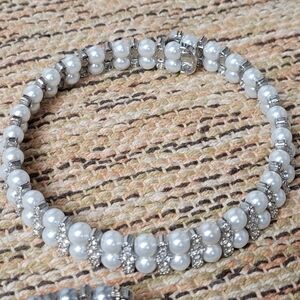 These chokers would be great for a wedding party or worn on their own. one is white pearl, and the other 4 are grey pearl.