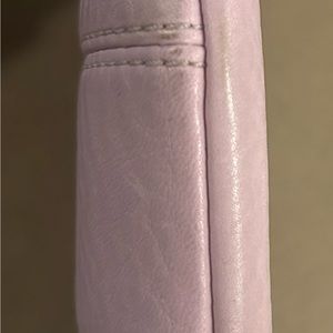 Purchased in 2008/2009 and was very well loved and used frequently. There is some staining that happened from utilizing the wristlet as a wallet/purse; however, the leather and stitching is in excellent condition (no tears or wearing away).