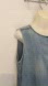 This Columbia dress features a sheath design in a faded distressed light denim blue. Dress is sleeveless with a crew neck & snap down buttons.” & deep front pockets. Fabric is cotton & soft to the touch. No stretch.