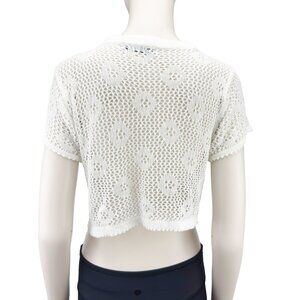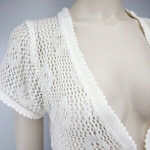 VINTAGE Crochet Cropped Boho Flowy Open Front Cardigan Bolero White Casa Donna S