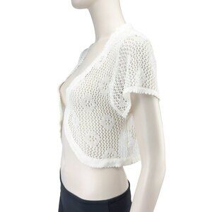 VINTAGE Crochet Flowy Cropped Boho Open Front Cardigan Bolero White Casa Donna S