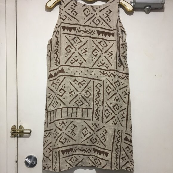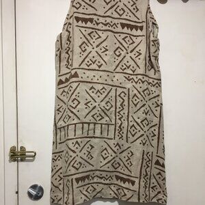 Dianne B New York Casual Midi Dress, Lightweight, Size 10, Color Tan, Brown Print, 100% Linen, Closure Back Zipper, Good Condition, Summer Dress, Great Look, Great Fit.
