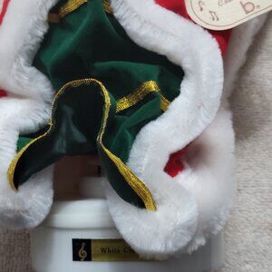 GOOD CONDITION AND COMES IN ITS ORIGINAL BOX. BOX DOES HAVE SOME ISSUES . PLEASE SEE PICTURES AS THIS IS THE DOLL YOU ARE GETTING. DOLL HAS BEEN TESTED AND PLAYS THE SONG "WHITE CHRISTMAS" PERFECTLY.