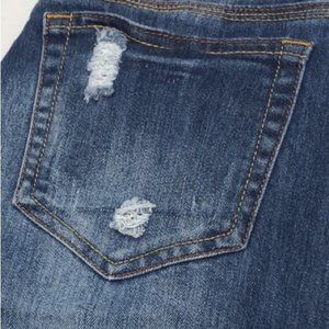 0821 HEAVYWEIGHT DENIM 98% COTTON POLY !! TWO COLOR TRIPLE STITCHING !! FACTORY DISTRESSED and FADED !! NOT ALTERED STONEWASHED MIDRISE VINTAGE QUALITY DOLLHOUSE DENIM and COOL style EXCELLENT CONDITION
