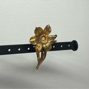 Vintage D'Orlan Signed Gold Tone Faux Pearl Flower Brooch. Circa 1980s.
