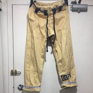 Vintage Unisex Casual Pants, No Label Fit Size S, Color Yellow, Blue, 100% Thick Cotton, Embroidered, No Pocket, Closure Drawstring Waist, Good Condition, Relaxed Fit, Great Look, Great Fit.