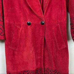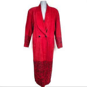 VINTAGE Danier Suede Red Full Length Long Trench Coat