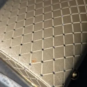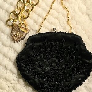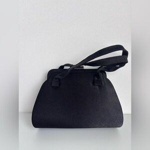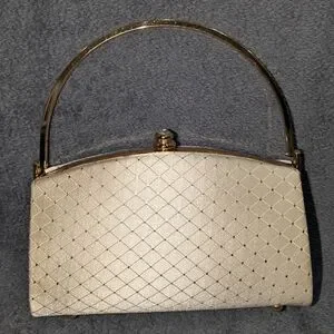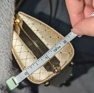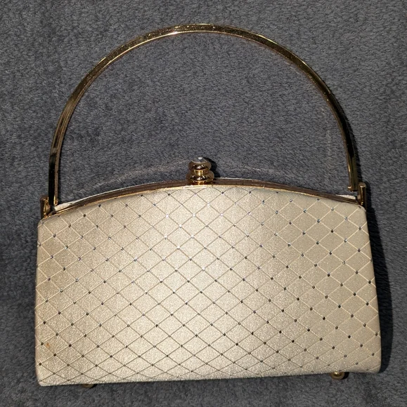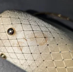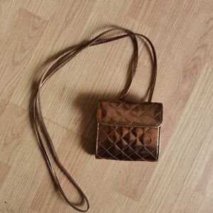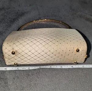 Small, hard shell mini handbag from the 90s. Some stains, all pictured. Does have 2 tabs inside to attach longer chain, but chain is not included.