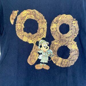 VINTAGE Disney Animal Kingdom T-Shirt Sm Navy Blue Safari Mickey Mouse 1998 Rare